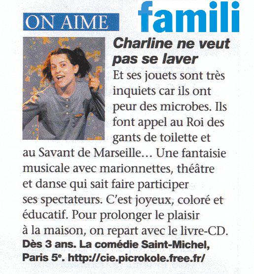 Comédie drôle et tendre, "Charline veut pas se laver" entraine les enfants de 3 à 8 ans à suivre avec complicité l’histoire de cette petite fille, pas toujours très sage.