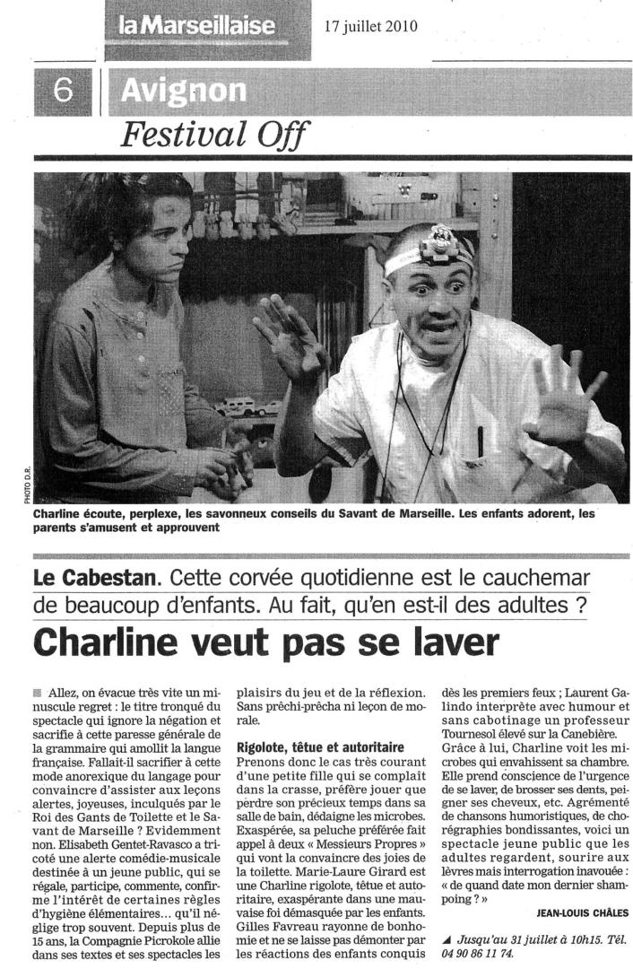 Avec cette nouvelle création Avignon 2010, La Compagnie Picrokole aborde avec fantaisie et bonne humeur un thème proche de l’univers des enfants, l’hygiène et la toilette.