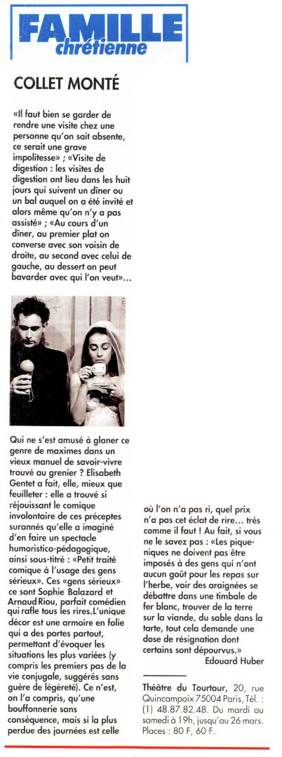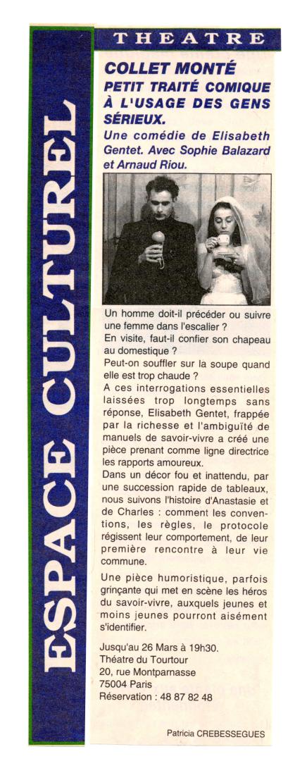 A ces interrogations essentielles, laissées trop longtemps sans réponse, la Compagnie Picrokole répond enfin en présentant, dans un décor fou et inattendu, une succession de tableaux mettant en scène Charles et Anastasie, héros d’un certain savoir-vivre.